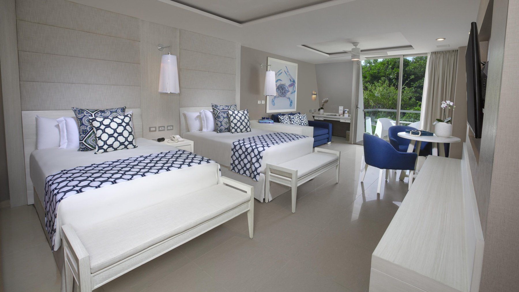 The newly renovated Deluxe Junior Suites of the Grand Sirenis Riviera Maya Resort & Spa bring our uniquely designed, comfortable rooms to an increased level of modern luxury and style. The advanced sleek, contemporary design of each 560 sq ft units offer maximum relaxation with spectacular views. Suites are available with the option of a king sized bed or two double beds.
